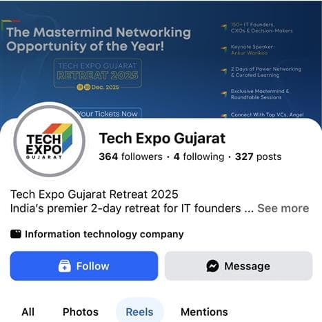 Beginning at 3:00 PM at CEE Ahmedabad, this high-impact session brings together 150+ IT founders, CEOs, and investors for an afternoon of expert-led AI and growth masterclasses. The event focuses on providing the tech fraternity with actionable strategies and networking opportunities, concluding with a formal dinner at 7:00 PM.